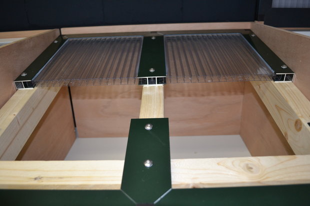 Deze veranda heeft een afmeting van 400 cm diep x 406 cm breed. Deze veranda wordt compleet geleverd. U dient alleen zelf nog een onder constructie van hout of staal te maken. Voor deze prijs heeft u: de benodigde 16 mm dikke polycarbonaat platen (in opaal of helder) de benodigde gekleurde aluminium profielen met 1 x 16 mm flens in verstek gezaagd de benodigde gekleurde aluminium profielen met 2 x 16 mm flens in verstek gezaagd kunststof hoekstukken profielen zijn leverbaar in de kleur: wit - antraciet - groen - zwart DIT IS EEN AFHAALPRODUCT EN KAN NIET VERZONDEN WORDEN!
